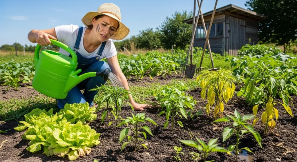 - Watering inconsistently → Overwatering leads to root rot, while underwatering stresses plants and reduces yield.