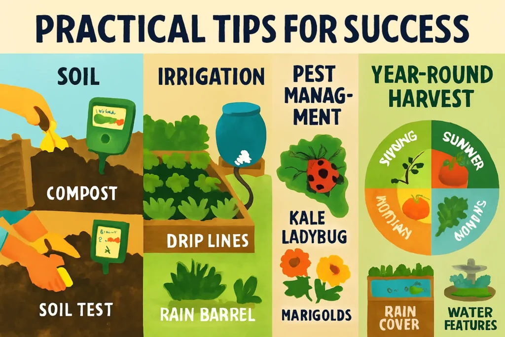 - For intermediate gardeners: Experiment with layering—fruit trees, berry shrubs, herbs, and groundcovers all working together.